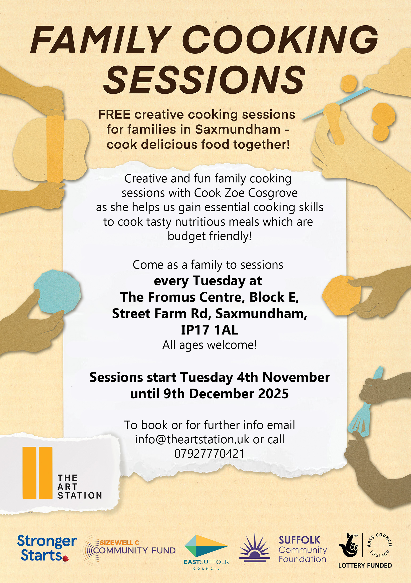 FREE Family cooking sessions start on Tuesday 4th November, 4pm – 6pm at The Fromus Centre, Saxmundham.
