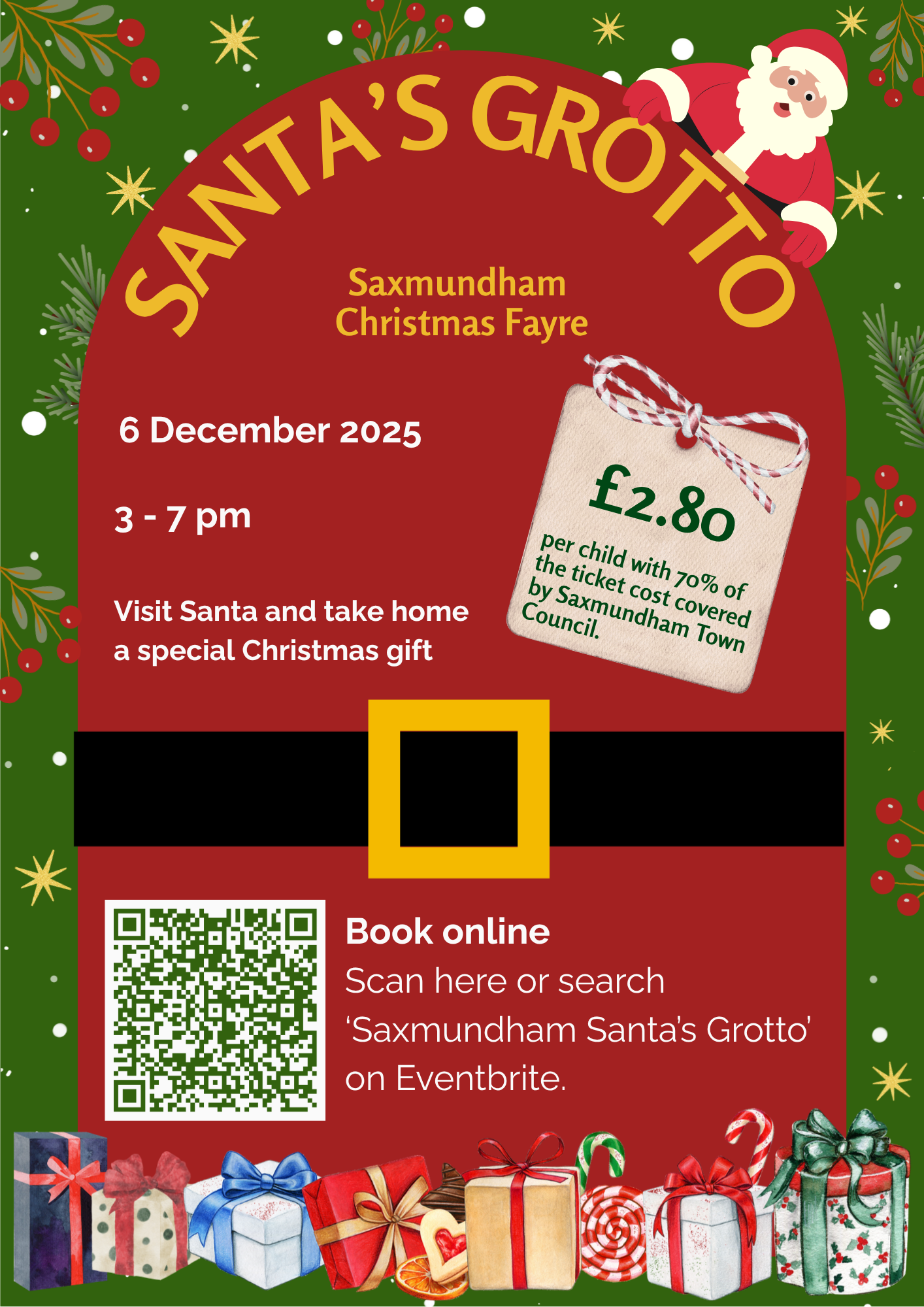 This year, Saxmundham Town Council is delighted to host Santa’s Grotto, complete with gifts, sparkle, and a sprinkling of holiday cheer.